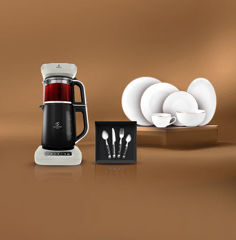 Karaca Caysever Robotea Pro 4 in 1 sprechender automatischer Teekocher Wasserkocher und Filterkaffeemaschine 2500W Chrome