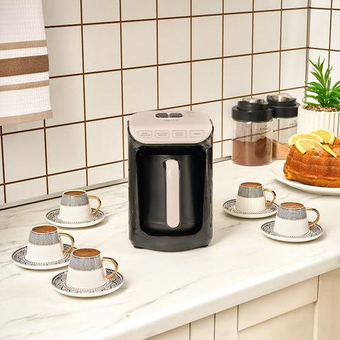 Türkische Kaffeekocher und elektrische Cezve Modelle bieten eine komfortable und moderne Möglichkeit, traditionellen türkischen Kaffee mit authentischem Geschmack zuzubereiten. Ob klassischer Mokka, Milchkaffee oder Varianten wie Kohlenkaffee – die Geräte von Karaca verbinden jahrhundertealte Kaffee Kultur mit zuverlässiger Technik. Dank schneller Erhitzung, gleichmäßiger Zubereitung und kompakter Designs eignen sie sich ideal für den täglichen Gebrauch. Ergänzend lohnt sich ein Blick auf passende Serien im Bereich Für Kaffeeliebhaber, wo weitere Kaffeesets und Zubehör erhältlich sind.