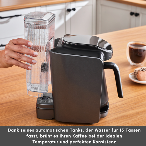 With AquaBrew technology, water is sprayed during brewing to mix your Turkish coffee perfectly, delivering an intense flavor and a creamy foam layer.