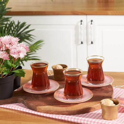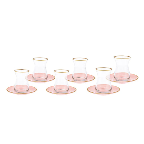 Karaca Retro 12 Piece Tea Glass Set for 12 Person Pink