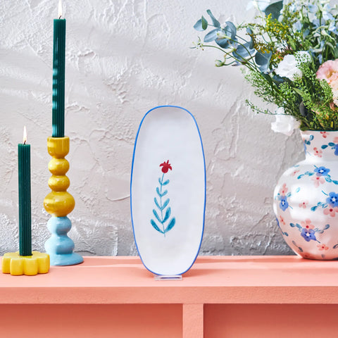 Karaca Primavera Ovaler Teller mit Roten Blumen