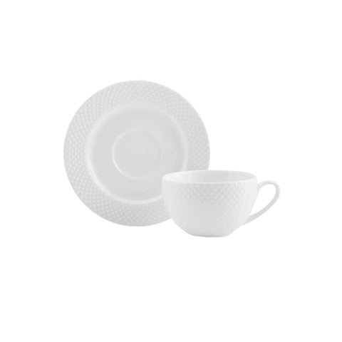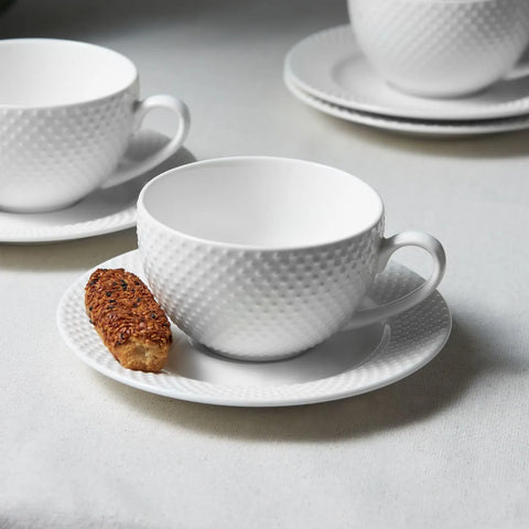 Karaca Punto für 4 Personen Teetasse und Untertasse Set, 8 Teilig, New Generation Bone, Weiß, 220ml