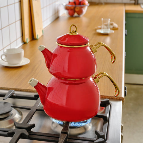 Karaca Retro Teekannen- Set-Rot Bestandteile