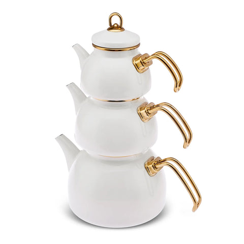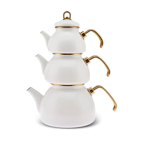 Karaca Retro Emaillierte Teekanne, 3 Teilig, Creme