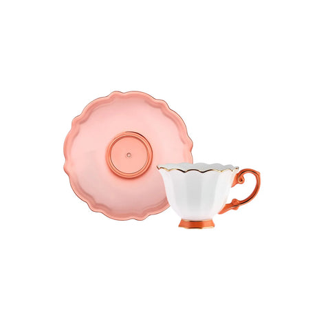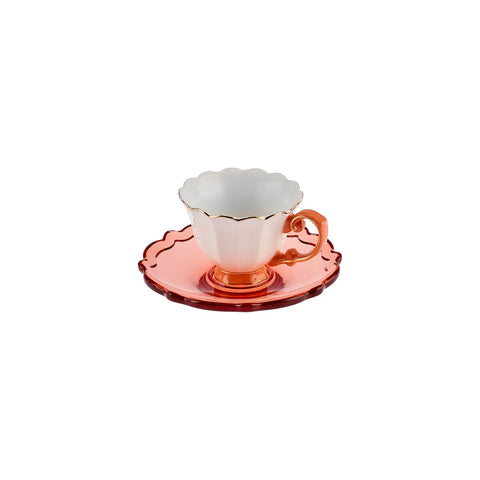 Karaca Samo Orange Kaffeetasse Set für 2 Personen mit Acryl Untertasse 90 ml
