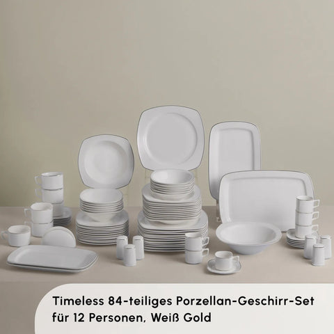 Karaca Timeless Gold Square Geschirr-Set für 12 Personen, 84-teilig