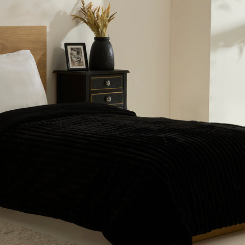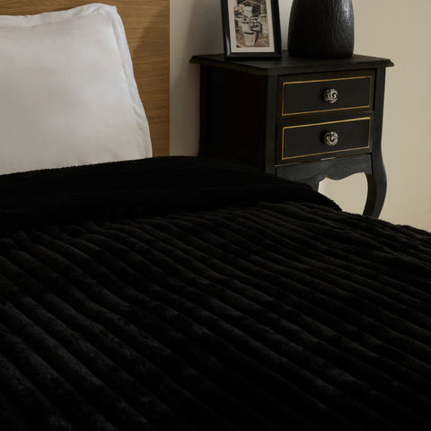 Karaca Stripe Sherpa Siyah Battaniye 150x200